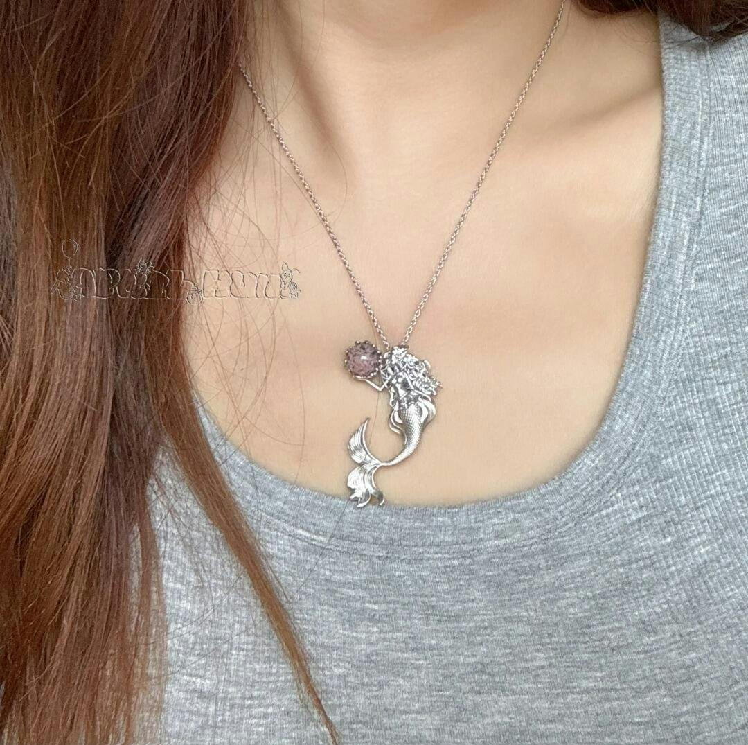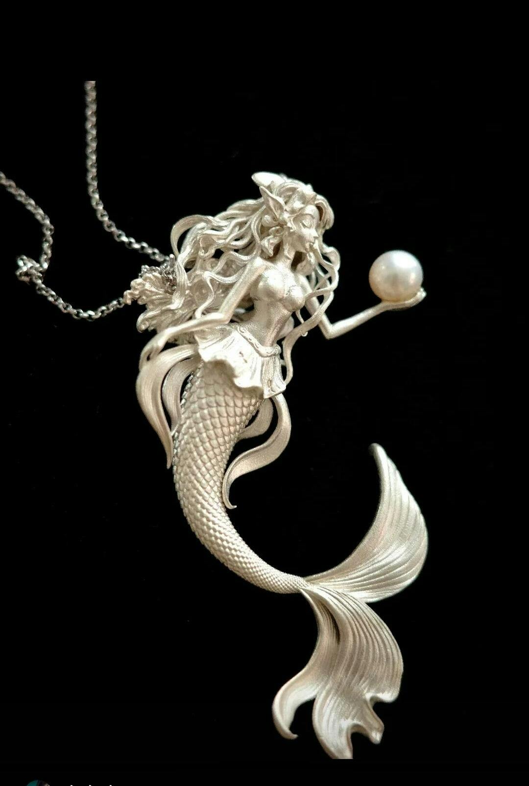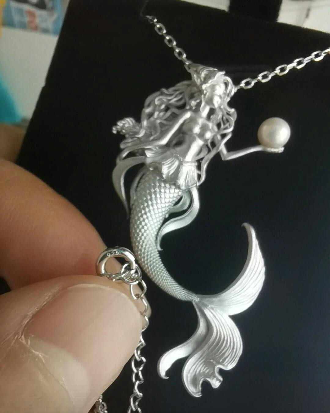 Mermaid Hand Holding Pearl Necklace